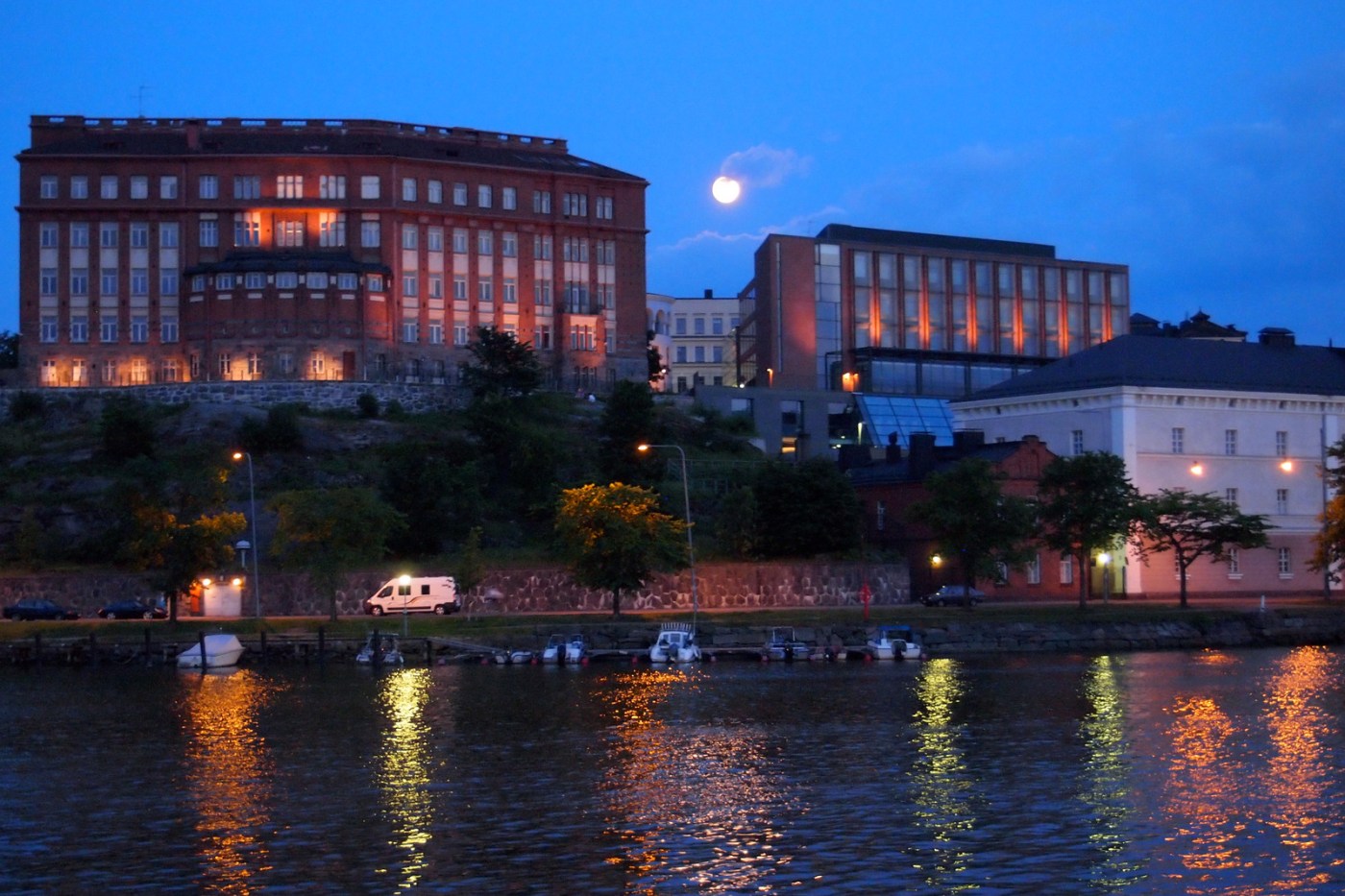 Vietin tämän juhannuksen Helsingin keskustassa. Illan ehdoton tähti oli matalalla loistanut ”superkuu”. Ilmiö aiheutuu silloin, kun Kuu on hetkellisesti radallaan lyhimmän mahdollisen etäisyyden päässä Maasta. Yleensä superkuu näyttäytyy kerran vuodessa, ja tänä vuonna ajankohdaksi valikoitui sopivasti juhannus. Lähes yöttömänä yönä Kuuta ei voinut yksinkertaisesti olla huomaamatta: se tuntui seuraavan meitä juhannuksenviettäjiä kaikkialle, kuten seuraavat kuvat kertovat.