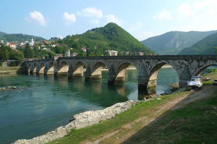 Drvengrad sijaitsee lähellä Bosnian rajaa. Rajan vaihtumista ei voinut olla huomaamatta, sillä toisin kuin Schengen-alueella rajamuodollisuudet olivat yhä voimissaan. Bosniassa lähdimme heti kohti Sarajevoa, mutta pysähdyimme pikaisesti Višegradissa, joka tunnetaan Unescon maailmanperintökohteeksi luokitellusta Mehmed Paša Sokolovićin sillasta.