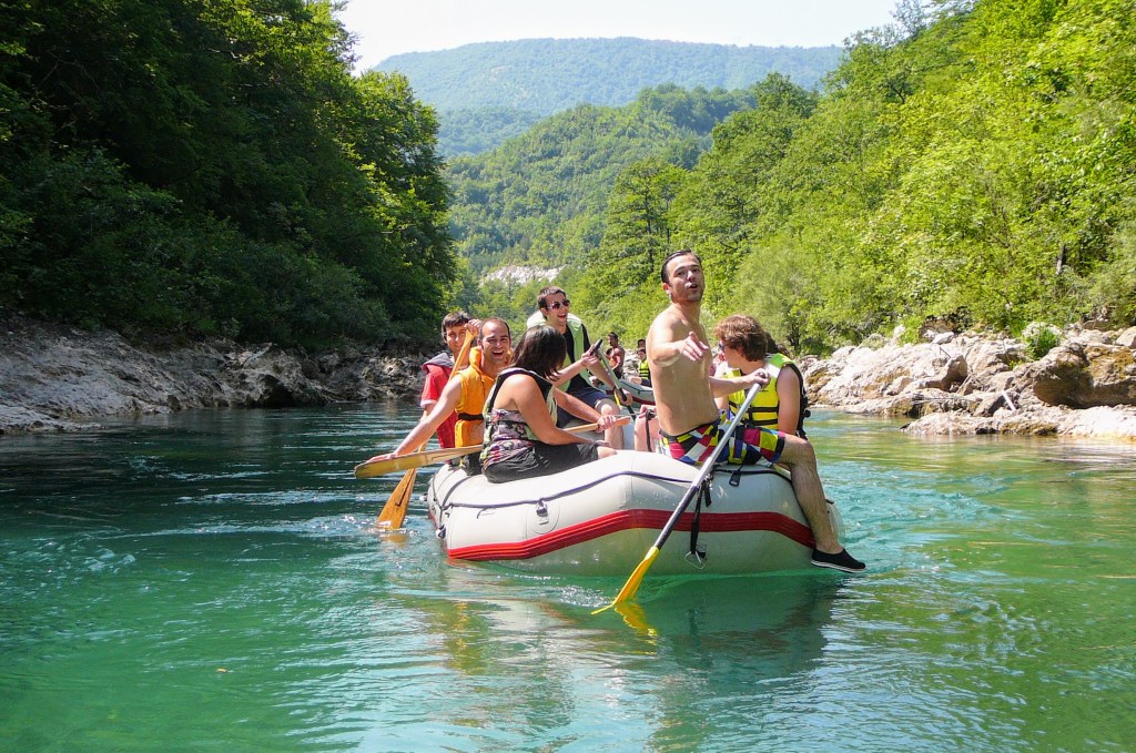 Kirjauduimme nopeasti sisään ja lähdimme miltei välittömästi alas Neretva-joelle, jonne meille oli järjestetty koskenlaskua. Vedimme pelastusliivit päällemme ja jakauduimme pienempiin ryhmiin. Ryhmissä nousimme veneisiin, joiden kulusta vastasivat ammattilaiset. Veneissä saimme toki auttaa melonnassa, mutta vastuu paatin hallinnasta oli koko ajan ”kapteeneilla”. Kyse oli siis enemmän elämyksestä kuin urheilusta.