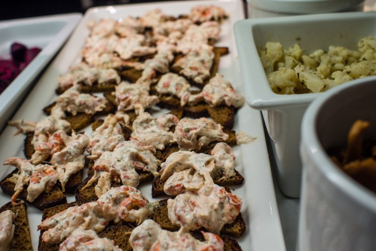 Buffetin arvasin laajaksi, mutta silti ruokalajien runsaus pääsi yllättämään. Jo alkuruoissa lautanen kävi pieneksi ja valikointia oli tehtävä, jotta myös pääruoalle jäi tilaa. Ruoan esillepanoon oli satsattu muistikuviani enemmän, ja ravintolasta kerrottiin, että esimerkiksi kylmien kalojen asetteluja on muutettu niin, että palat irtoavat aiempaa helpommin toisistaan. Tämä tuntui myös pitävän kutinsa, koska ruokaa sai helposti napattua haluamansa määrän.