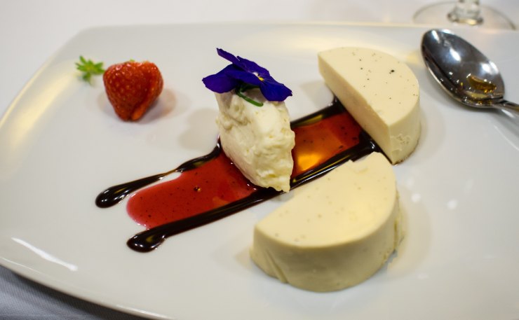 Etenkin alku- ja jälkiruoissa pohjoisen raaka-aineet kohtasivat Italian. Kokonaisuuden kanssa maistelimme viinejä ja leipiä, ja kritisoitavaa oli vaikea keksiä, sillä ruoka oli oikein hyvää.
